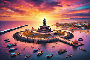 Embark on a full-day excursion to Kanyakumari. Visit the Vivekananda Rock Memorial, Kanyakumari Temple, and Gandhi Mandapam. Witness the confluence of the Indian Ocean, Bay of Bengal, and Arabian Sea.